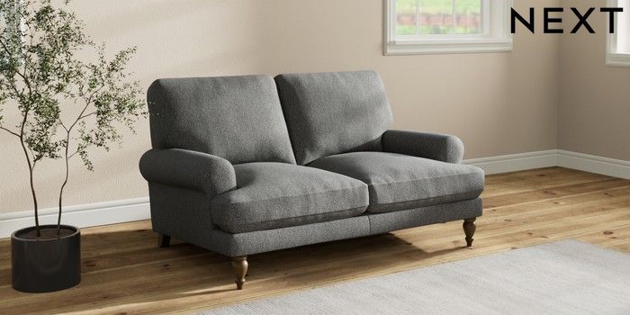 7.2.10 Erin Deep Relaxed Sit 2 Seater Small Sofa Tweedy Chenille Dark Grey High Classic Turned - Mid | Made Click here to use our website with more accessibility support, for example screen readers