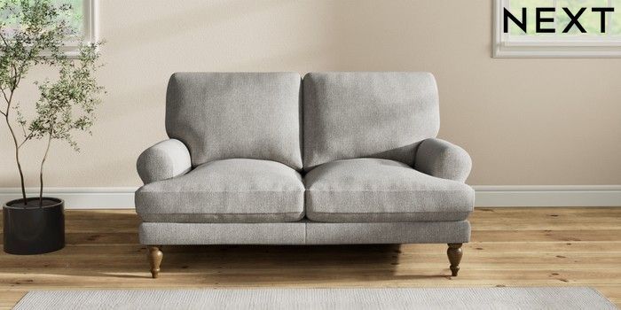 7.2.10 Erin Deep Relaxed Sit 2 Seater Small Sofa Tweedy Chenille Mid Grey High Classic Turned - Mid | Made Click here to use our website with more accessibility support, for example screen readers
