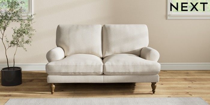 7.2.10 Erin Deep Relaxed Sit 2 Seater Small Sofa Tweedy Chenille Oyster High Classic Turned - Mid | Made Click here to use our website with more accessibility support, for example screen readers