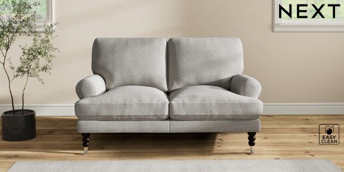 7.2.10 Erin Deep Relaxed Sit 2 Seater Small Sofa Woven Chenille Easy Clean Light Grey High Classic Turned Chrome Castor - Dark | Made Click here to use our website with more accessibility support, for example screen readers