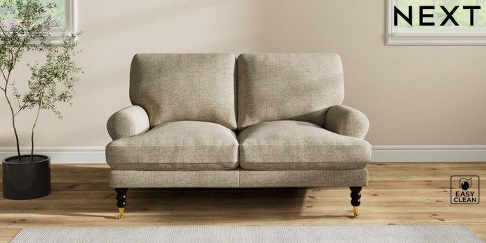 7.2.10 Erin Deep Relaxed Sit 2 Seater Small Sofa Woven Chenille Easy Clean Mid Natural High Classic Turned Brass Castor - Dark | Made Click here to use our website with more accessibility support, for example screen readers
