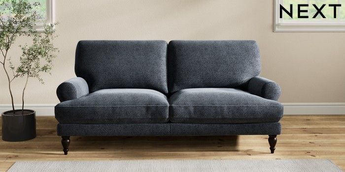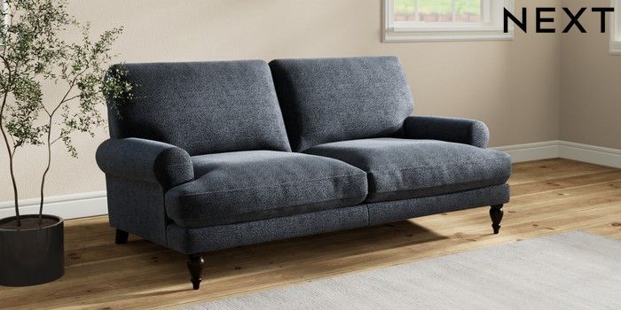 7.2.10 Erin Deep Relaxed Sit 3 Seater Small Sofa Boucle Chenille Dark Slate Blue High Classic Turned - Dark | Made Click here to use our website with more accessibility support, for example screen readers