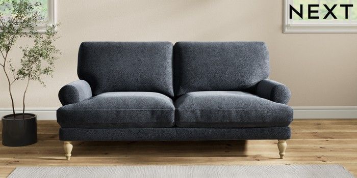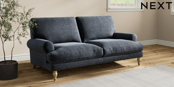 7.2.10 Erin Deep Relaxed Sit 3 Seater Small Sofa Boucle Chenille Dark Slate Blue High Classic Turned - Light | Made Click here to use our website with more accessibility support, for example screen readers