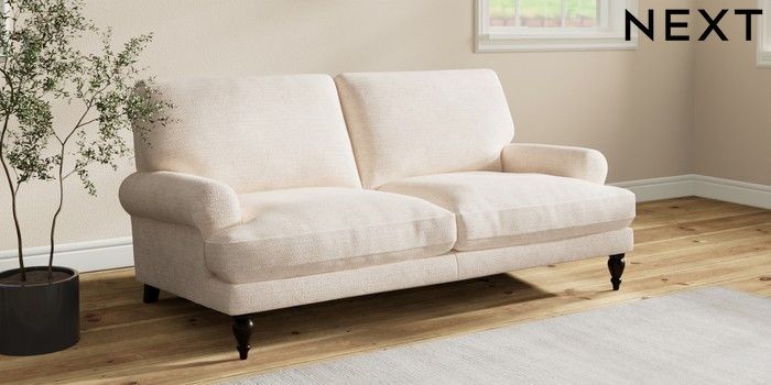 7.2.10 Erin Deep Relaxed Sit 3 Seater Small Sofa Boucle Chenille Oyster High Classic Turned - Dark | Made Click here to use our website with more accessibility support, for example screen readers
