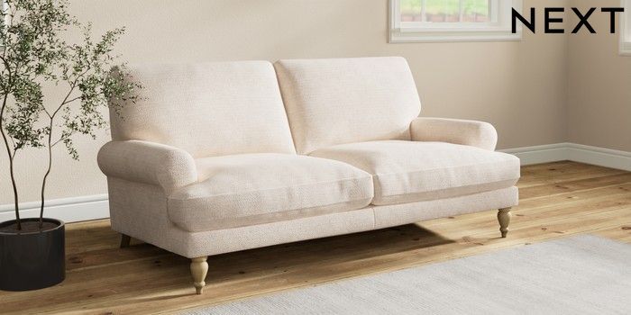 7.2.10 Erin Deep Relaxed Sit 3 Seater Small Sofa Boucle Chenille Oyster High Classic Turned - Light | Made Click here to use our website with more accessibility support, for example screen readers