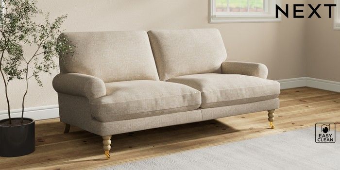 Add timeless charm to your living space with the Erin Sofa, featuring elegant scroll arms. Sink into its specially designed "Relaxed Sit" cushions, crafted with clever foam and fibre for an incredibly soft and plump feel. These cushions offer a truly relaxed sit, and with a little regular plumping and turning, they'll always look their best. They're also reversible for extra convenience! Make the Erin uniquely yours by choosing from a huge range of coloured fabrics.