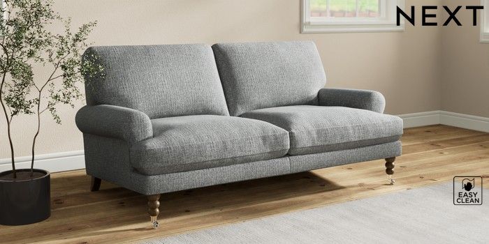 7.2.10 Erin Deep Relaxed Sit 3 Seater Small Sofa Chunky Boucle Easy Clean Mid Grey High Classic Turned Chrome Castor - Mid | Made Click here to use our website with more accessibility support, for example screen readers