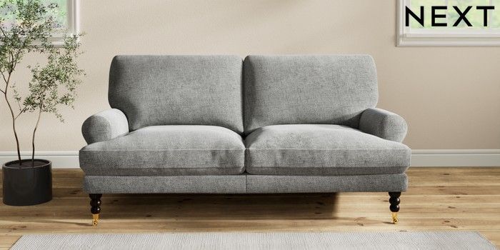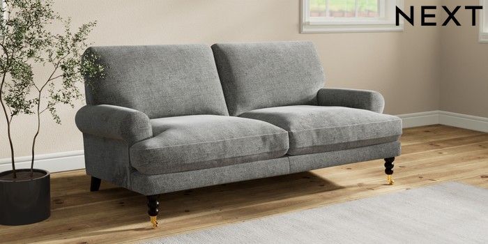 7.2.10 Erin Deep Relaxed Sit 3 Seater Small Sofa Chunky Chenille Dark Grey High Classic Turned Brass Castor - Dark | Made Click here to use our website with more accessibility support, for example screen readers