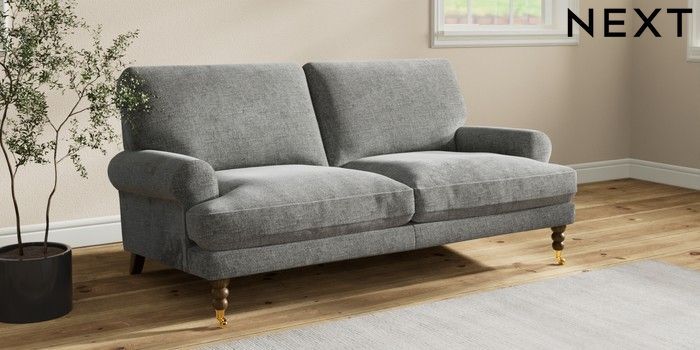 7.2.10 Erin Deep Relaxed Sit 3 Seater Small Sofa Chunky Chenille Dark Grey High Classic Turned Brass Castor - Mid | Made Click here to use our website with more accessibility support, for example screen readers