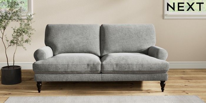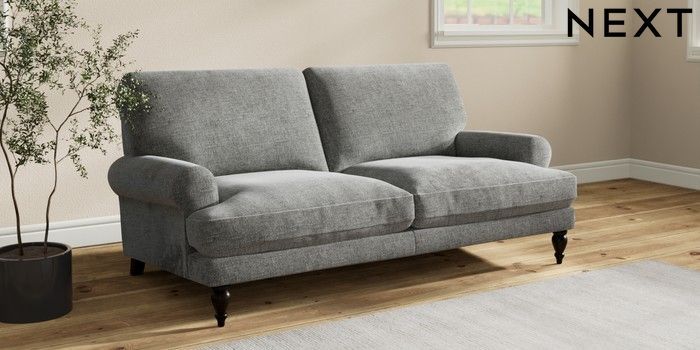 7.2.10 Erin Deep Relaxed Sit 3 Seater Small Sofa Chunky Chenille Dark Grey High Classic Turned - Dark | Made Click here to use our website with more accessibility support, for example screen readers