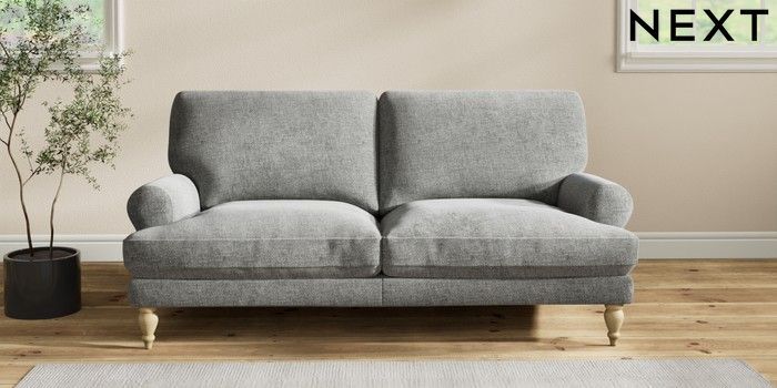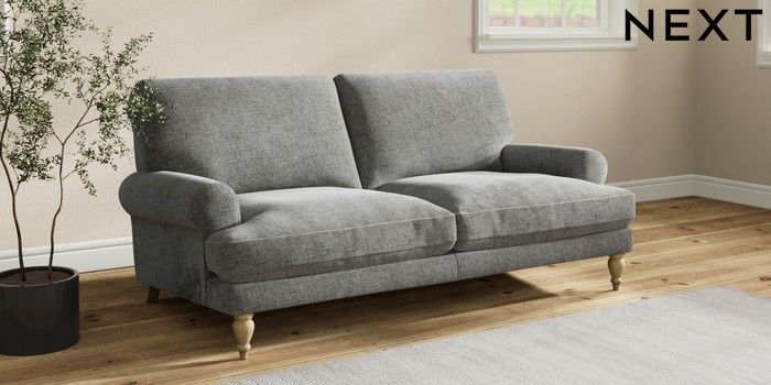 7.2.10 Erin Deep Relaxed Sit 3 Seater Small Sofa Chunky Chenille Dark Grey High Classic Turned - Light | Made Click here to use our website with more accessibility support, for example screen readers