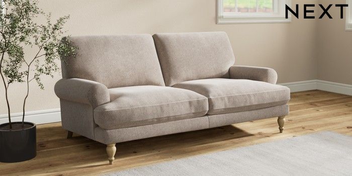 7.2.10 Erin Deep Relaxed Sit 3 Seater Small Sofa Chunky Chenille Light Dove High Classic Turned - Light | Made Click here to use our website with more accessibility support, for example screen readers