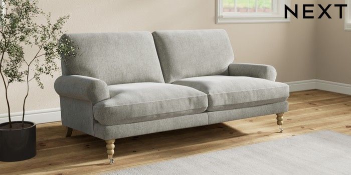 7.2.10 Erin Deep Relaxed Sit 3 Seater Small Sofa Chunky Chenille Light Grey High Classic Turned Chrome Castor - Light | Made Click here to use our website with more accessibility support, for example screen readers