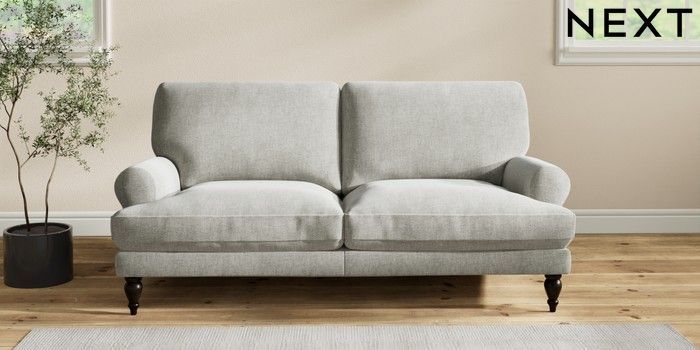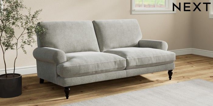 7.2.10 Erin Deep Relaxed Sit 3 Seater Small Sofa Chunky Chenille Light Grey High Classic Turned - Dark | Made Click here to use our website with more accessibility support, for example screen readers