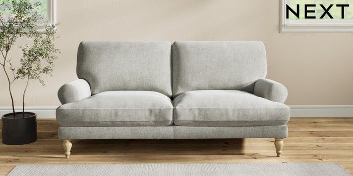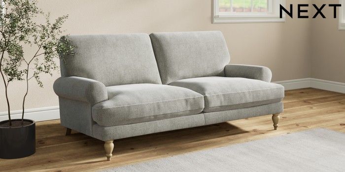 7.2.10 Erin Deep Relaxed Sit 3 Seater Small Sofa Chunky Chenille Light Grey High Classic Turned - Light | Made Click here to use our website with more accessibility support, for example screen readers