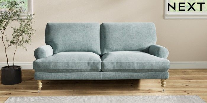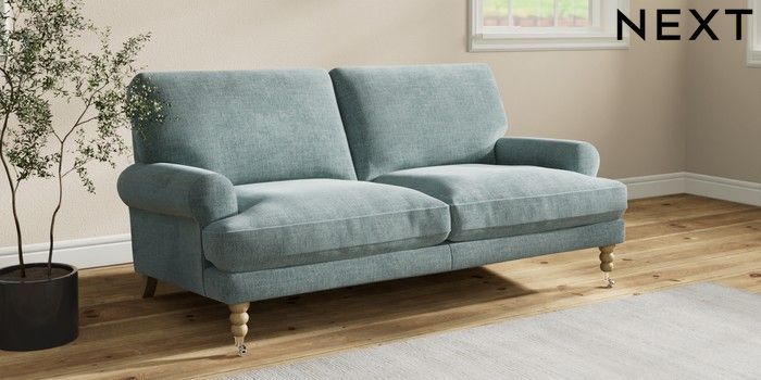 7.2.10 Erin Deep Relaxed Sit 3 Seater Small Sofa Chunky Chenille Light Teal Green High Classic Turned Chrome Castor - Light | Made Click here to use our website with more accessibility support, for example screen readers