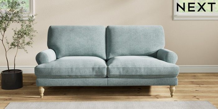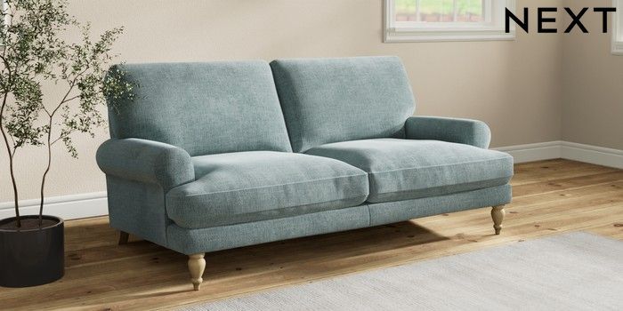 7.2.10 Erin Deep Relaxed Sit 3 Seater Small Sofa Chunky Chenille Light Teal Green High Classic Turned - Light | Made Click here to use our website with more accessibility support, for example screen readers