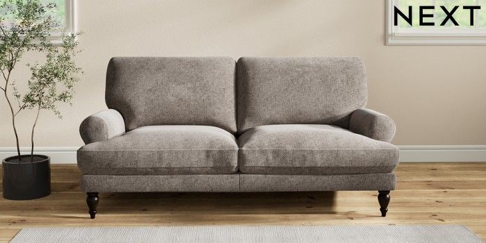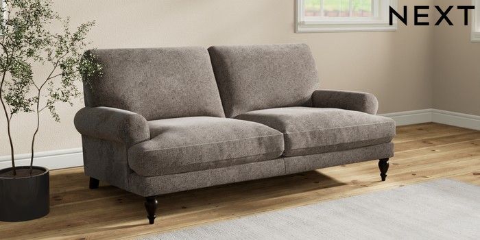 7.2.10 Erin Deep Relaxed Sit 3 Seater Small Sofa Chunky Chenille Mink Brown High Classic Turned - Dark | Made Click here to use our website with more accessibility support, for example screen readers