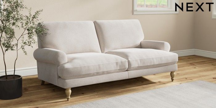 7.2.10 Erin Deep Relaxed Sit 3 Seater Small Sofa Chunky Chenille Oyster High Classic Turned - Light | Made Click here to use our website with more accessibility support, for example screen readers