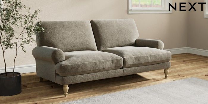 7.2.10 Erin Deep Relaxed Sit 3 Seater Small Sofa Chunky Marl Light Olive Green High Classic Turned - Light | Made Click here to use our website with more accessibility support, for example screen readers
