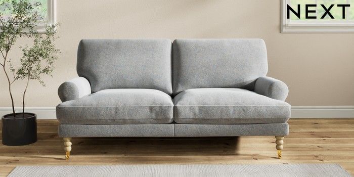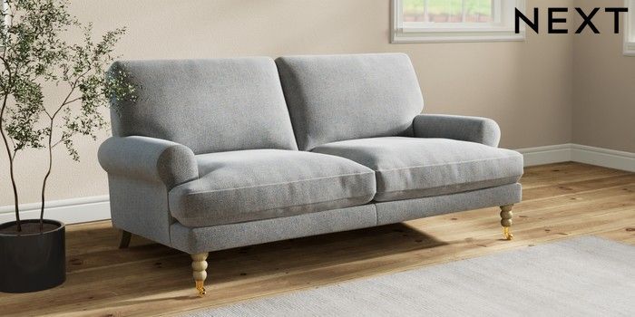 7.2.10 Erin Deep Relaxed Sit 3 Seater Small Sofa Chunky Marl Mid Grey High Classic Turned Brass Castor - Light | Made Click here to use our website with more accessibility support, for example screen readers
