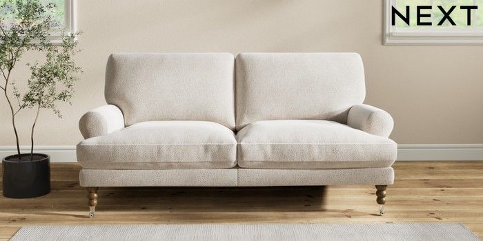 7.2.10 Erin Deep Relaxed Sit 3 Seater Small Sofa Chunky Marl Oyster High Classic Turned Chrome Castor - Mid | Made Click here to use our website with more accessibility support, for example screen readers