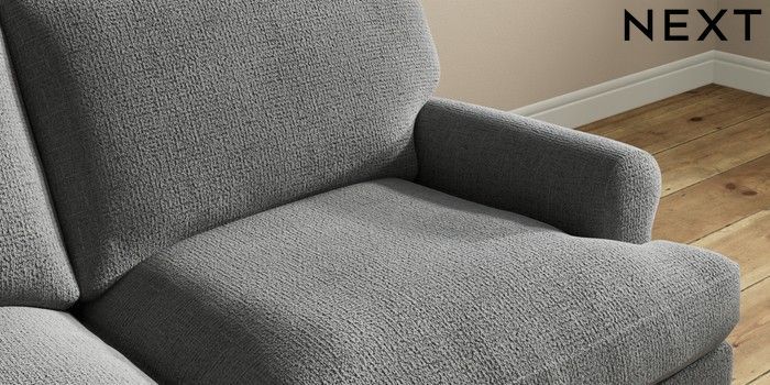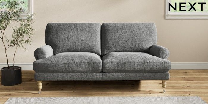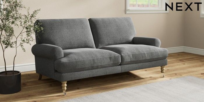 7.2.10 Erin Deep Relaxed Sit 3 Seater Small Sofa Chunky Texture Dark Grey High Classic Turned Chrome Castor - Light | Made Click here to use our website with more accessibility support, for example screen readers