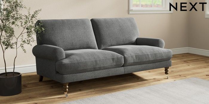 7.2.10 Erin Deep Relaxed Sit 3 Seater Small Sofa Chunky Texture Dark Grey High Classic Turned Chrome Castor - Mid | Made Click here to use our website with more accessibility support, for example screen readers
