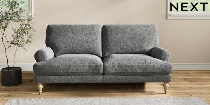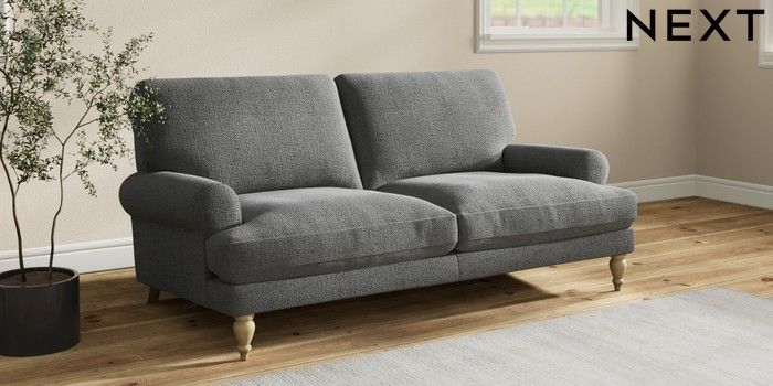 7.2.10 Erin Deep Relaxed Sit 3 Seater Small Sofa Chunky Texture Dark Grey High Classic Turned - Light | Made Click here to use our website with more accessibility support, for example screen readers