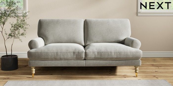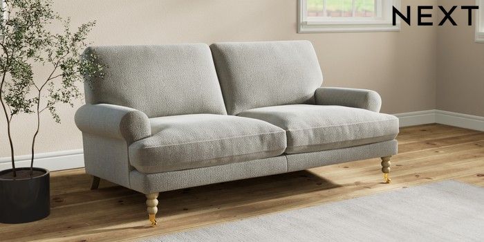 7.2.10 Erin Deep Relaxed Sit 3 Seater Small Sofa Chunky Texture Dove High Classic Turned Brass Castor - Light | Made Click here to use our website with more accessibility support, for example screen readers