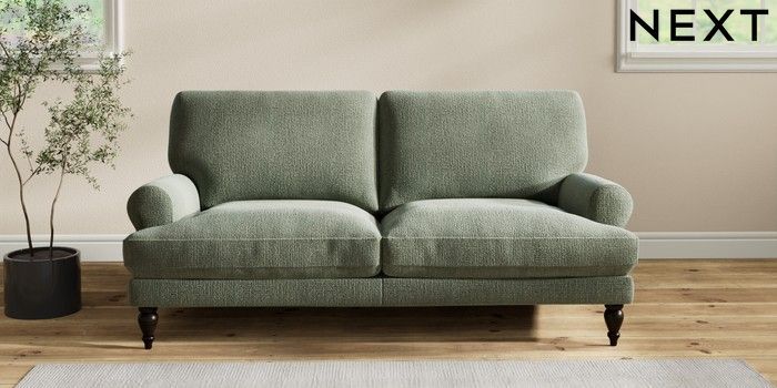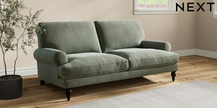 7.2.10 Erin Deep Relaxed Sit 3 Seater Small Sofa Chunky Texture Mid Forest Green High Classic Turned - Dark | Made Click here to use our website with more accessibility support, for example screen readers