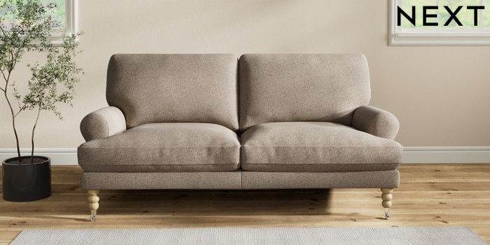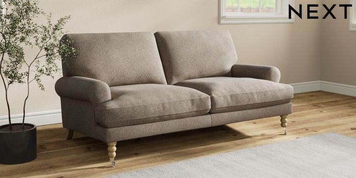 7.2.10 Erin Deep Relaxed Sit 3 Seater Small Sofa Chunky Weave Dark Natural High Classic Turned Chrome Castor - Light | Made Click here to use our website with more accessibility support, for example screen readers