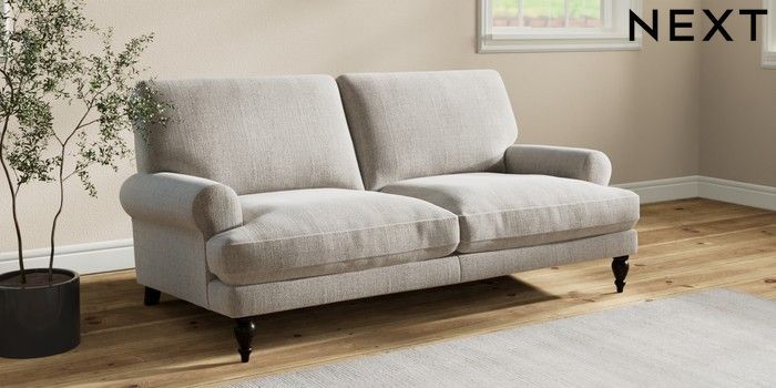 7.2.10 Erin Deep Relaxed Sit 3 Seater Small Sofa Chunky Weave Dove Grey High Classic Turned - Dark | Made Click here to use our website with more accessibility support, for example screen readers