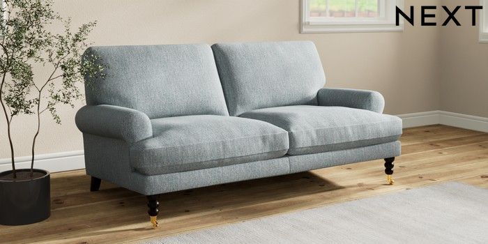 7.2.10 Erin Deep Relaxed Sit 3 Seater Small Sofa Chunky Weave Mid Blue High Classic Turned Brass Castor - Dark | Made Click here to use our website with more accessibility support, for example screen readers