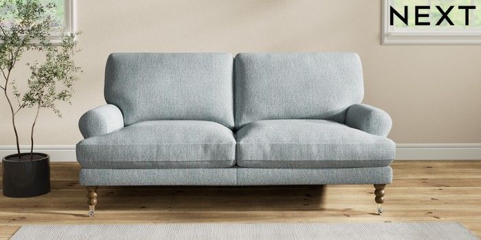 7.2.10 Erin Deep Relaxed Sit 3 Seater Small Sofa Chunky Weave Mid Blue High Classic Turned Chrome Castor - Mid | Made Click here to use our website with more accessibility support, for example screen readers