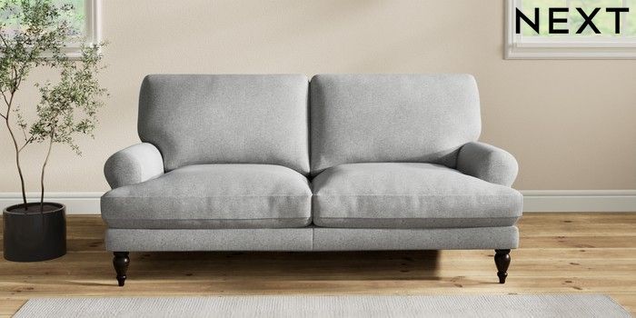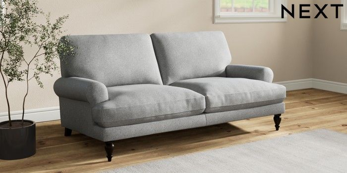 7.2.10 Erin Deep Relaxed Sit 3 Seater Small Sofa Chunky Weave Mid Grey High Classic Turned - Dark | Made Click here to use our website with more accessibility support, for example screen readers