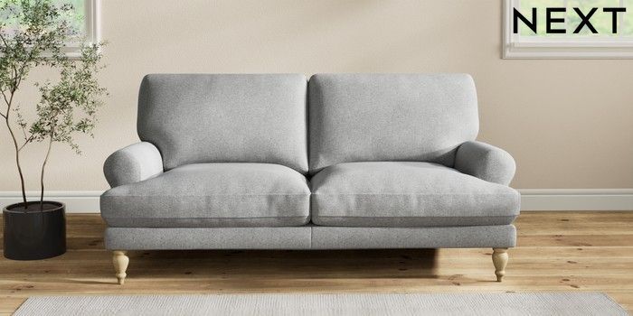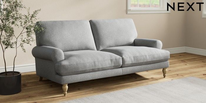 7.2.10 Erin Deep Relaxed Sit 3 Seater Small Sofa Chunky Weave Mid Grey High Classic Turned - Light | Made Click here to use our website with more accessibility support, for example screen readers