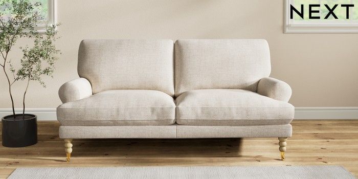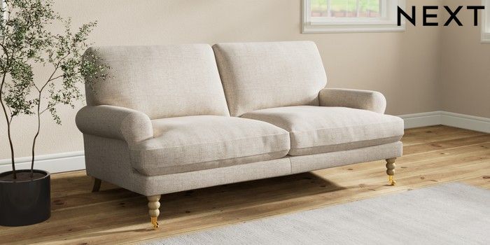 7.2.10 Erin Deep Relaxed Sit 3 Seater Small Sofa Chunky Weave Mid Natural High Classic Turned Brass Castor - Light | Made Click here to use our website with more accessibility support, for example screen readers