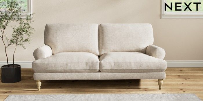 7.2.10 Erin Deep Relaxed Sit 3 Seater Small Sofa Chunky Weave Mid Natural High Classic Turned - Light | Made Click here to use our website with more accessibility support, for example screen readers