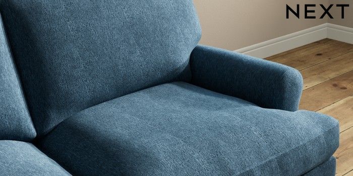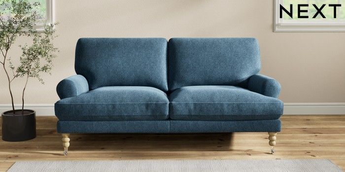 7.2.10 Erin Deep Relaxed Sit 3 Seater Small Sofa Cotswold Chenille Dark Blue High Classic Turned Chrome Castor - Light | Made Click here to use our website with more accessibility support, for example screen readers