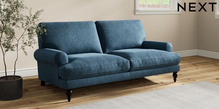 7.2.10 Erin Deep Relaxed Sit 3 Seater Small Sofa Cotswold Chenille Dark Blue High Classic Turned - Dark | Made Click here to use our website with more accessibility support, for example screen readers