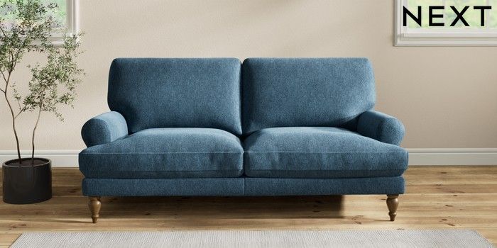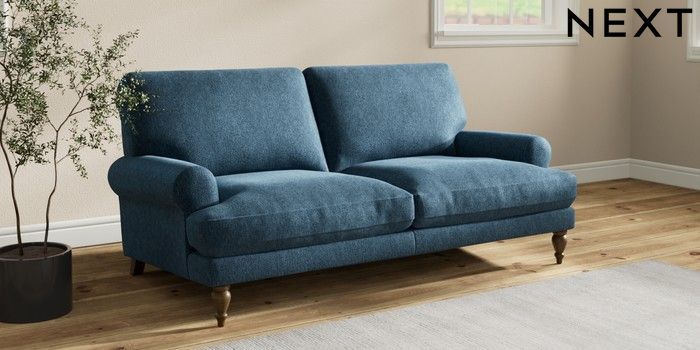 7.2.10 Erin Deep Relaxed Sit 3 Seater Small Sofa Cotswold Chenille Dark Blue High Classic Turned - Mid | Made Click here to use our website with more accessibility support, for example screen readers