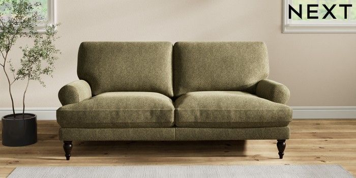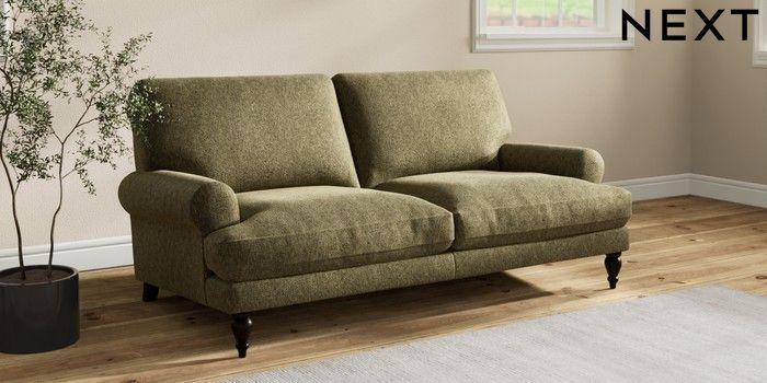 7.2.10 Erin Deep Relaxed Sit 3 Seater Small Sofa Cotswold Chenille Dark Green High Classic Turned - Dark | Made Click here to use our website with more accessibility support, for example screen readers