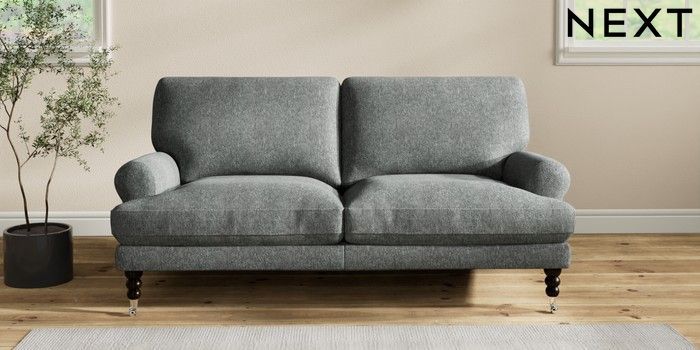 7.2.10 Erin Deep Relaxed Sit 3 Seater Small Sofa Cotswold Chenille Dark Grey High Classic Turned Chrome Castor - Dark | Made Click here to use our website with more accessibility support, for example screen readers