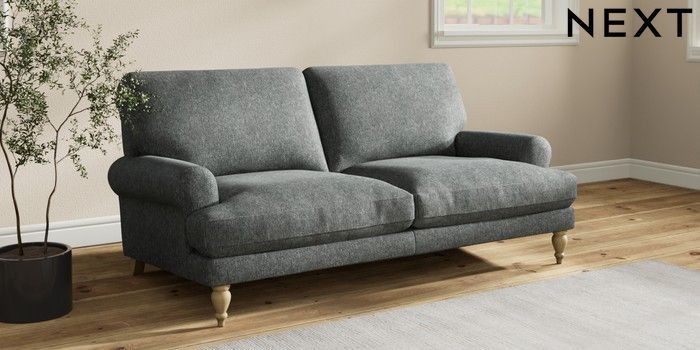 7.2.10 Erin Deep Relaxed Sit 3 Seater Small Sofa Cotswold Chenille Dark Grey High Classic Turned - Light | Made Click here to use our website with more accessibility support, for example screen readers