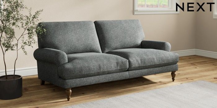 7.2.10 Erin Deep Relaxed Sit 3 Seater Small Sofa Cotswold Chenille Dark Grey High Classic Turned - Mid | Made Click here to use our website with more accessibility support, for example screen readers