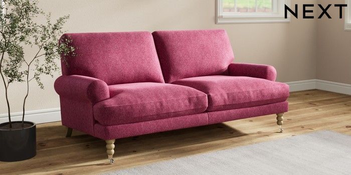 7.2.10 Erin Deep Relaxed Sit 3 Seater Small Sofa Cotswold Chenille Dark Raspberry Pink High Classic Turned Chrome Castor - Light | Made Click here to use our website with more accessibility support, for example screen readers