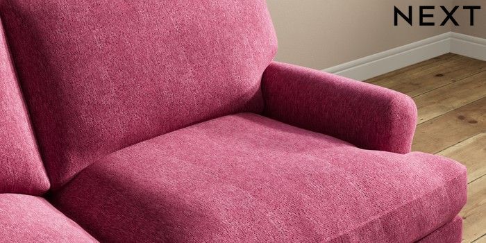 7.2.10 Erin Deep Relaxed Sit 3 Seater Small Sofa Cotswold Chenille Dark Raspberry Pink High Classic Turned Chrome Castor - Mid | Made Click here to use our website with more accessibility support, for example screen readers