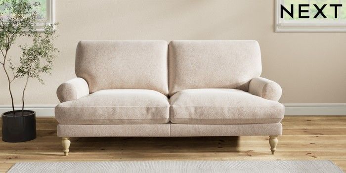 7.2.10 Erin Deep Relaxed Sit 3 Seater Small Sofa Cotswold Chenille Light Natural High Classic Turned - Light | Made Click here to use our website with more accessibility support, for example screen readers