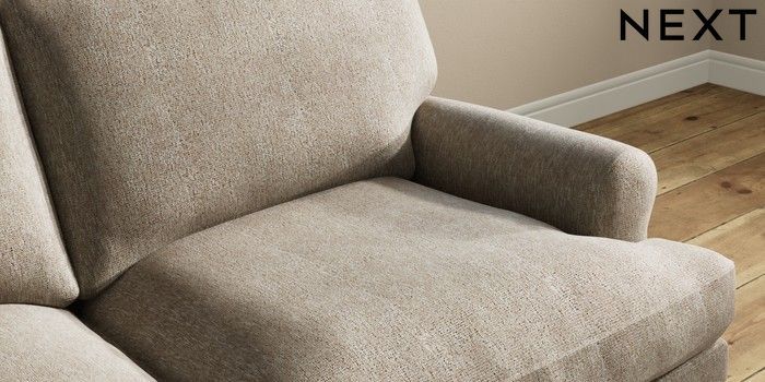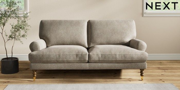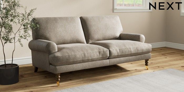 7.2.10 Erin Deep Relaxed Sit 3 Seater Small Sofa Cotswold Chenille Mid Mink Brown High Classic Turned Brass Castor - Mid | Made Click here to use our website with more accessibility support, for example screen readers